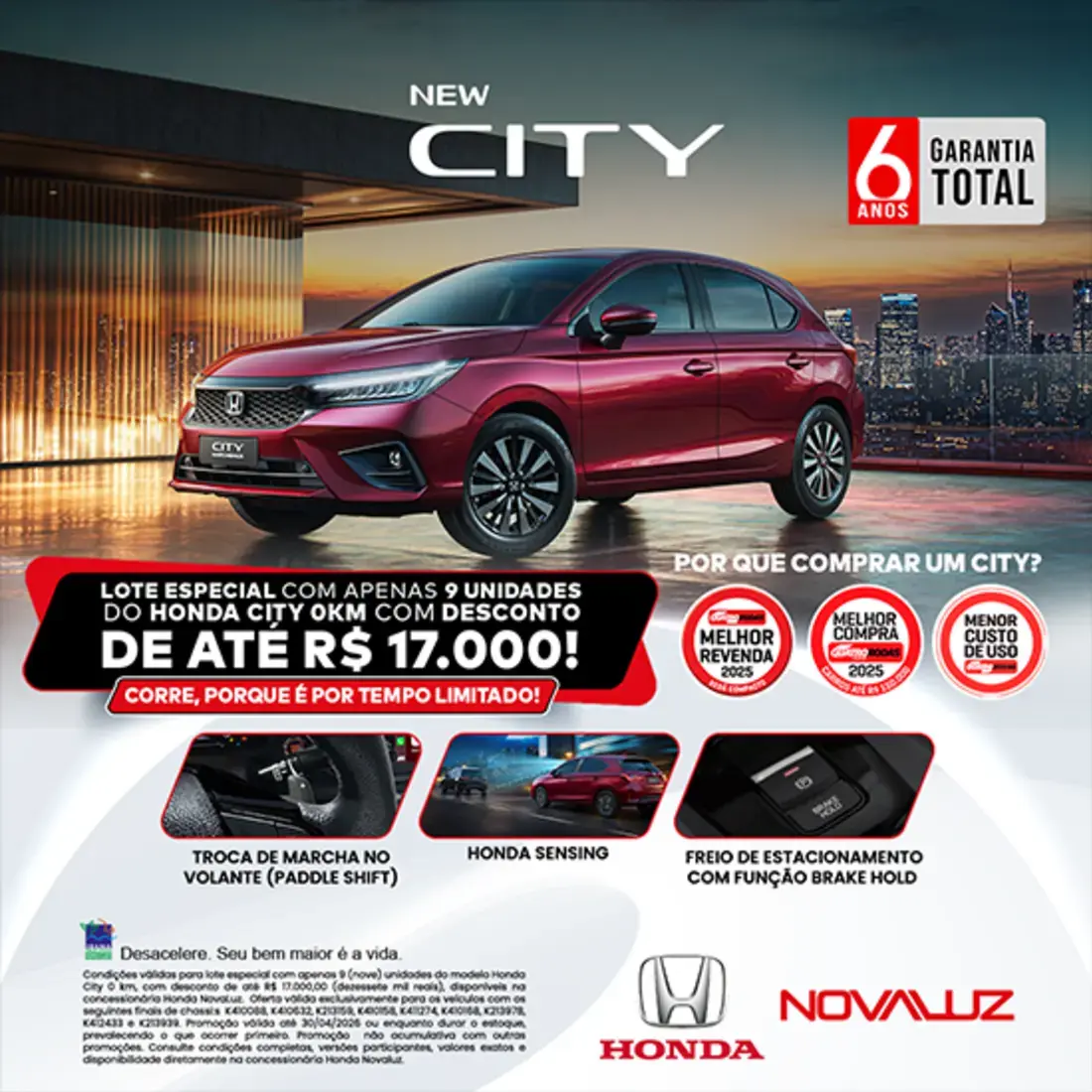 A Honda Brasil convocará uma campanha de recall sempre que tiver conhecimento de algum defeito nos seus produtos, visando garantir a segurança de seus clientes e a qualidade dos produtos e serviços.